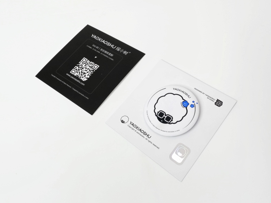 每款都配有摇小树正品防伪标,产品包装背后有对应故事的说明和二维码。
