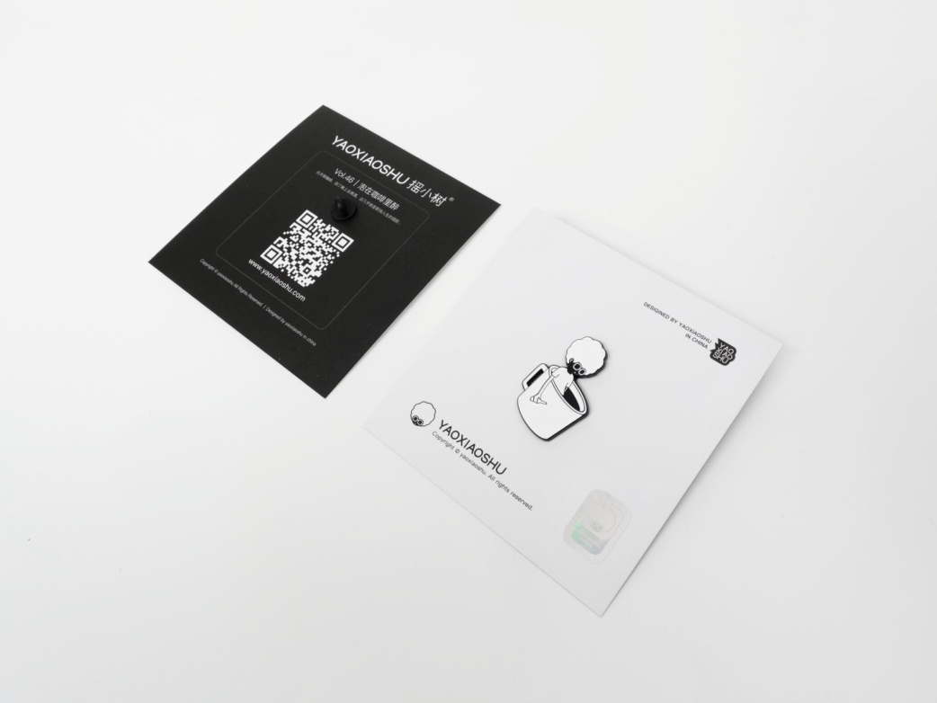每款都配有摇小树正品防伪标,产品包装背后有对应故事的说明和二维码。